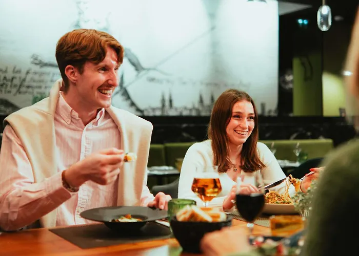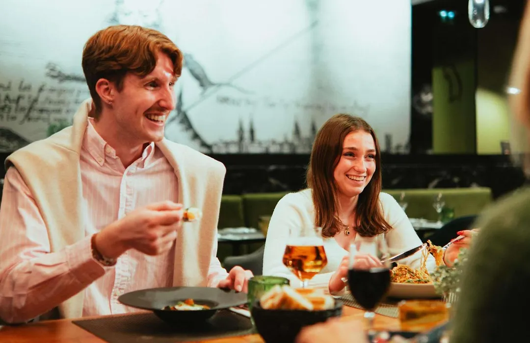 Le restaurant sert un délicieux buffet de petit-déjeuner, disponible à partir de 6h30, avec des suggestions hebdomadaires basées sur le marché. Les clients peuvent également apprécier une sélection de bières régionales et d'autres boissons au bar.
